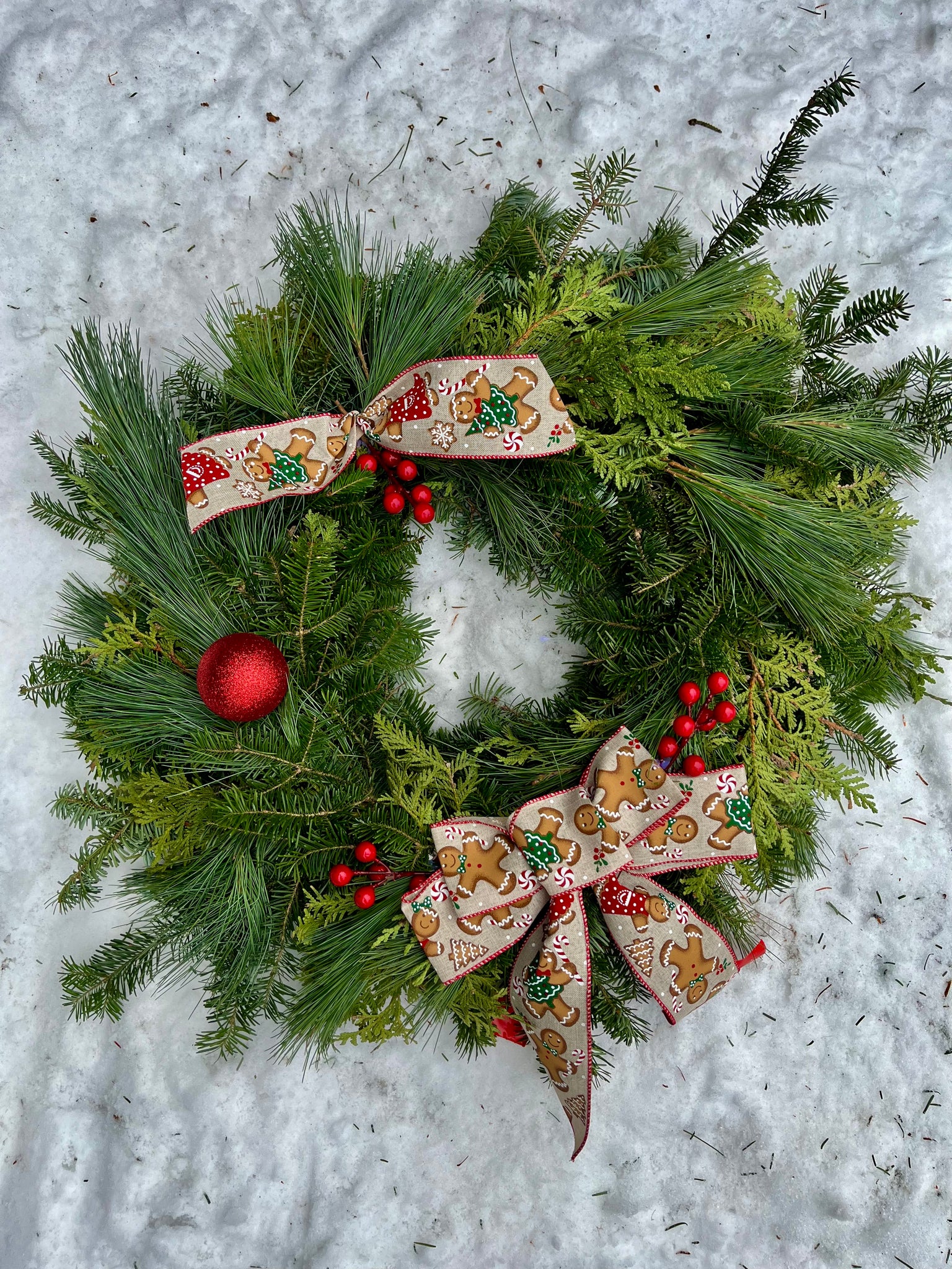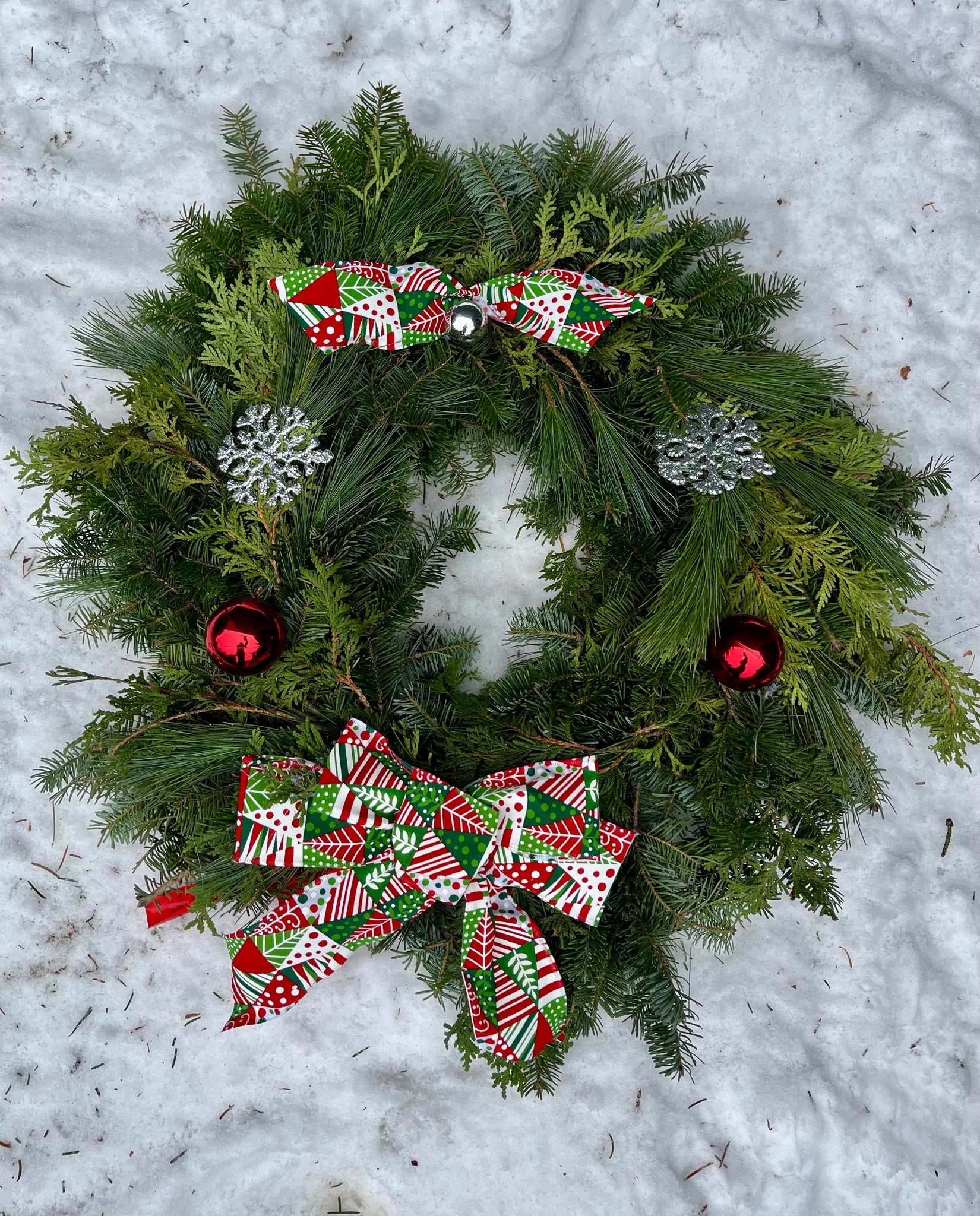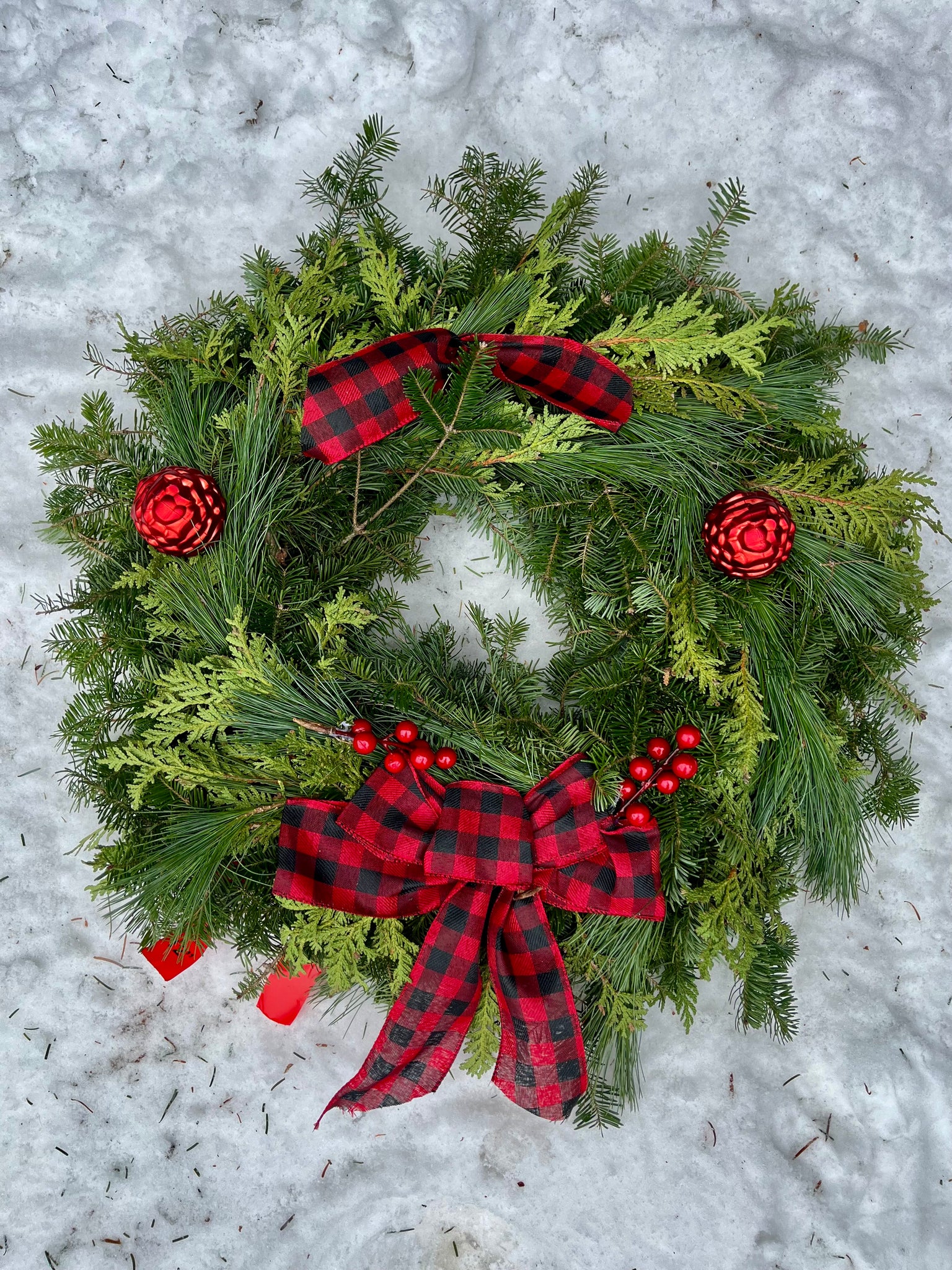 Belles couronnes naturelles faites de sapin, pin, cèdre et de buis. Elles auront des thèmes de couleurs différentes et les photos seront ajustées lorsque nous les recevrons. Plusieurs tailles seront aussi disponibles entre 12 et 36 pouces de diamètre.