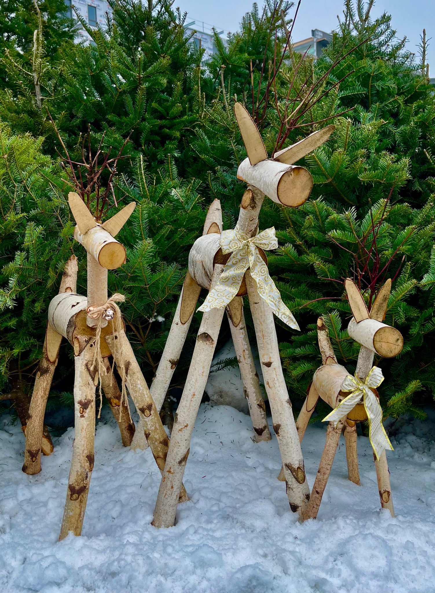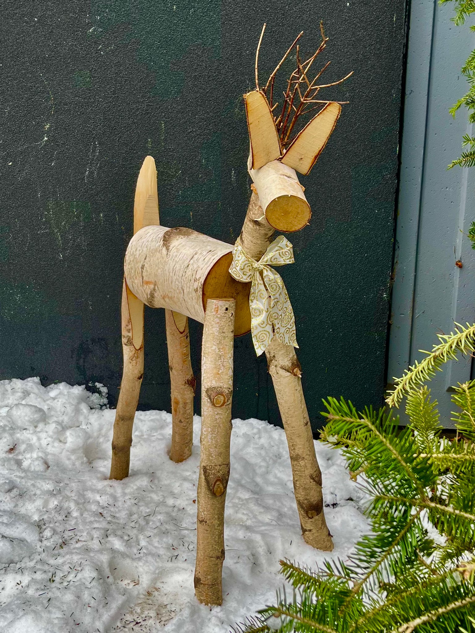 Beaux petits rennes fait en bouleau naturels. Photo à titre d’exemple. Ils auront des boucles au coup et des yeux. Trois grandeur disponible: petit, moyen et grand. Prix spécial pour une famille de trois qui comprend un renne de chaque grandeur.